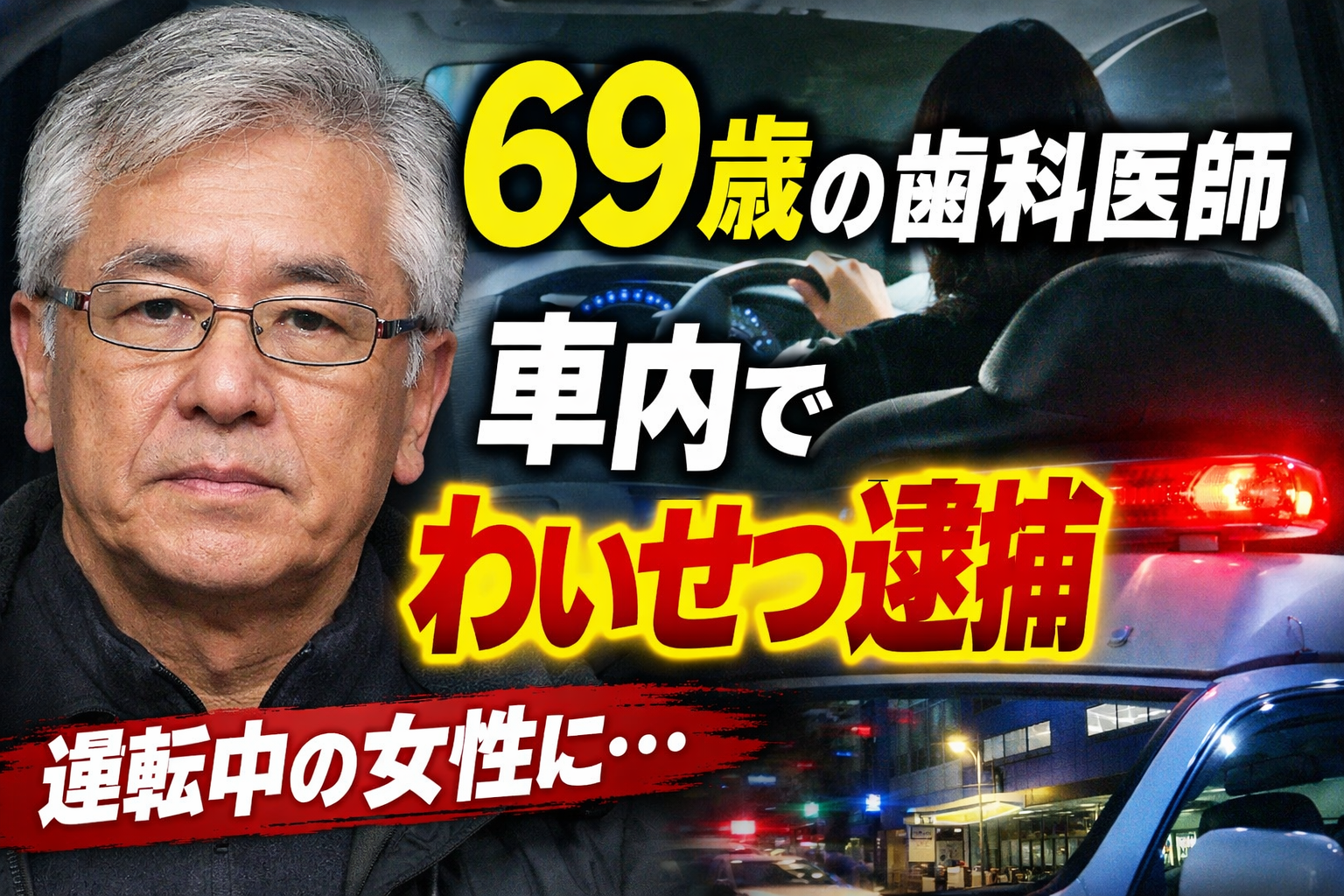 深夜、40代女性が運転する車の中で、面識のない69歳の歯科医師が上半身を触ったとして逮捕されました。